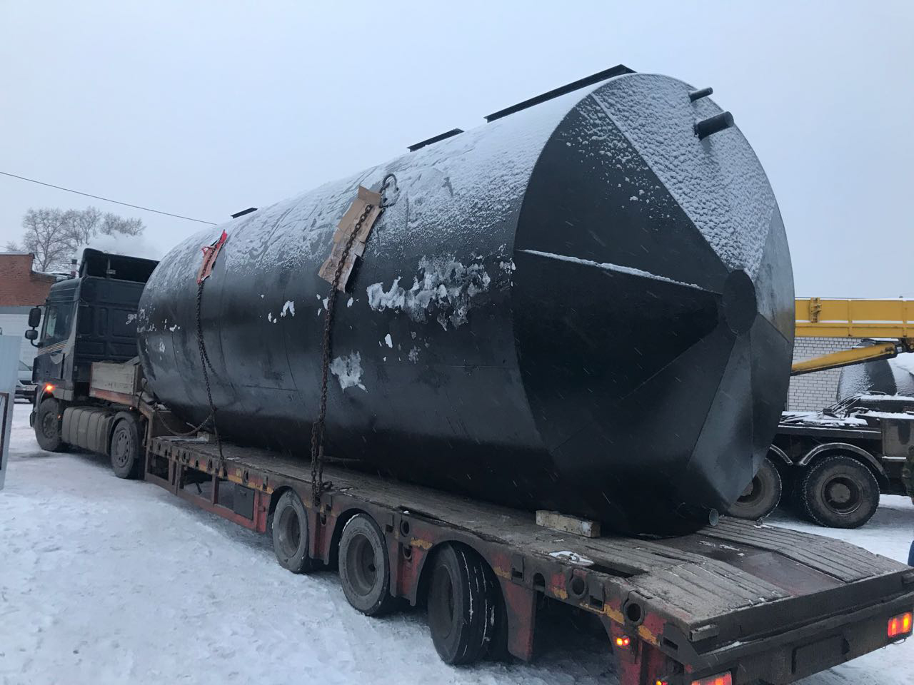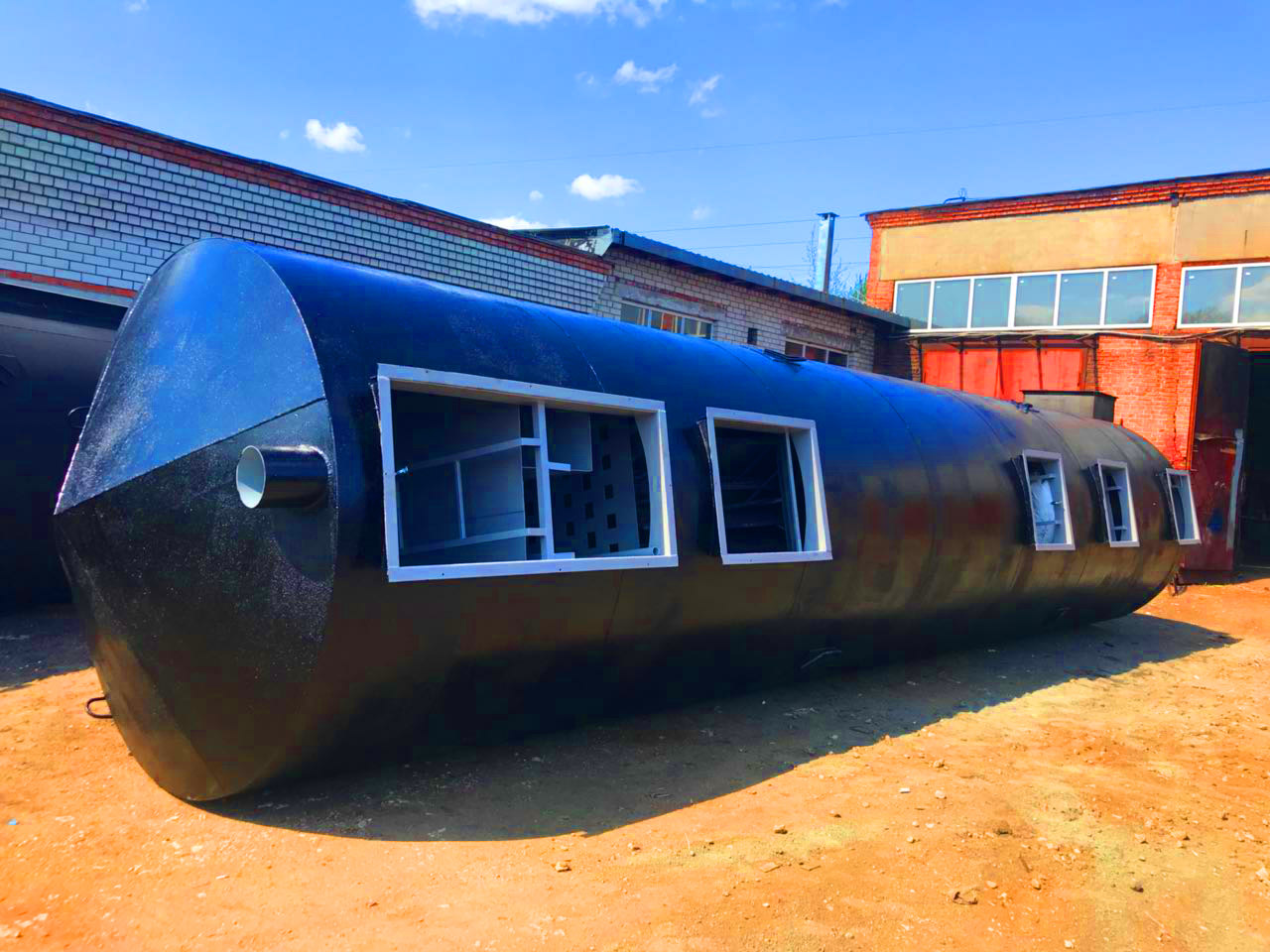 Габариты очистного сооружения: длина 7200 / диаметр 2400 / вес 4500 кг.
